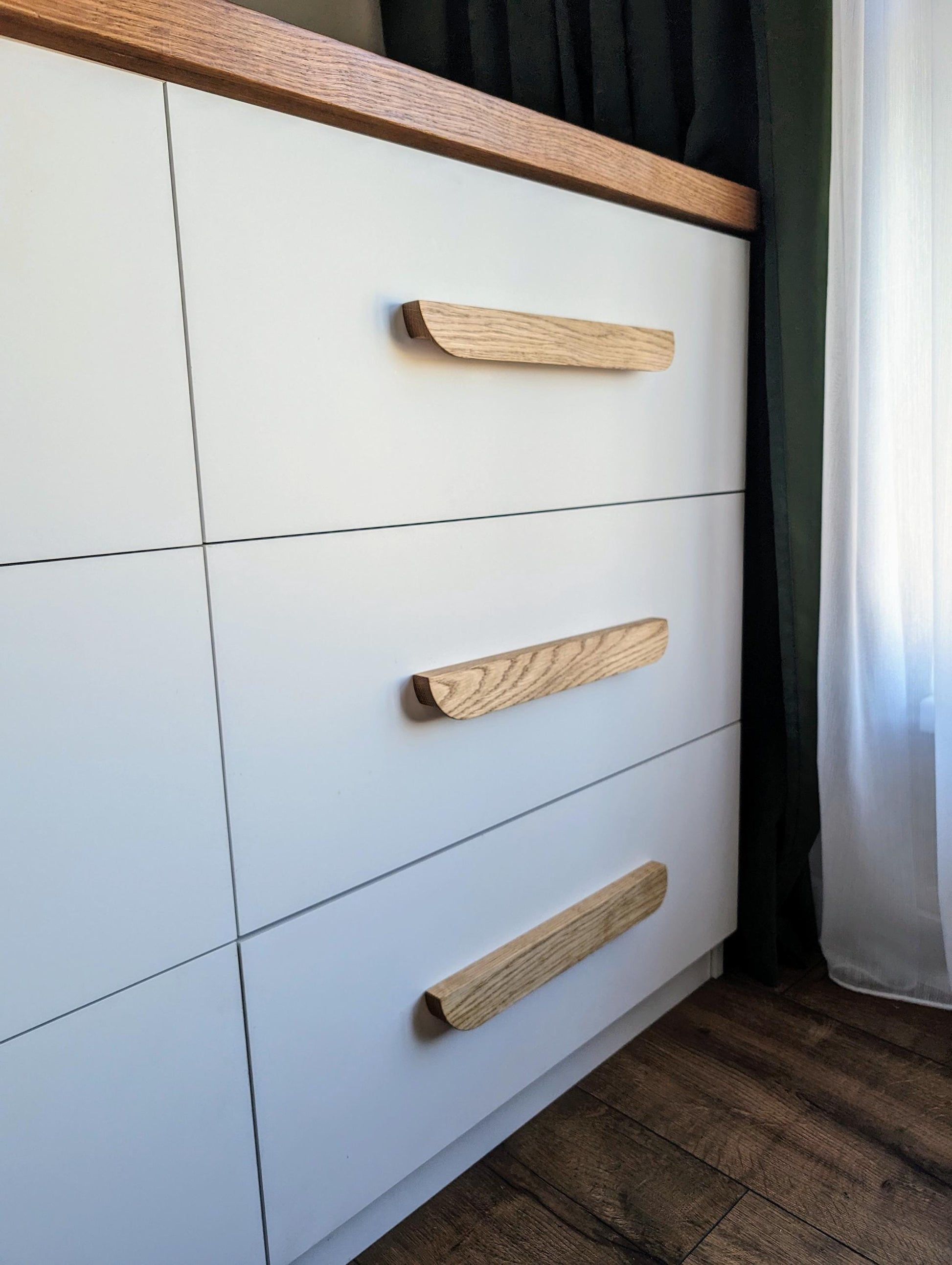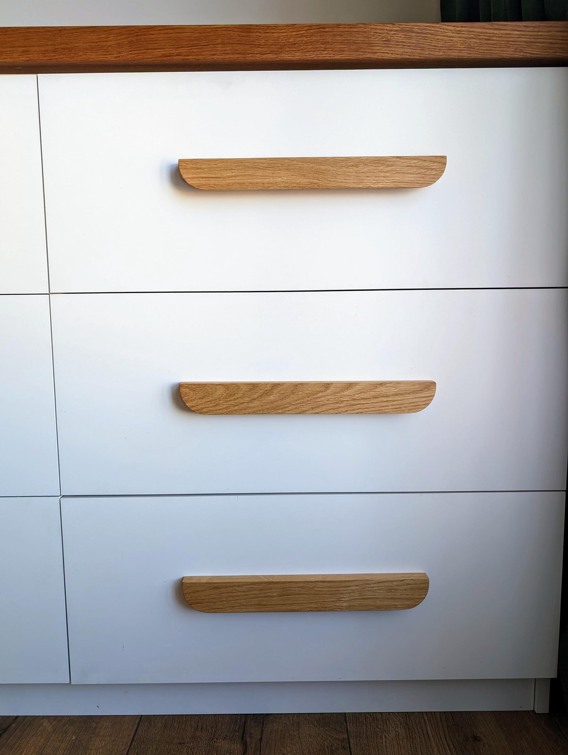 Upgrade your furniture with our Slim Oak Handles – elegant, handcrafted pulls made from high-quality solid oak. Their minimalist Scandinavian design adds warmth and sophistication to any cabinet, wardrobe, or drawer. Each piece is carefully shaped and finished by hand in our family workshop, making every handle unique.
