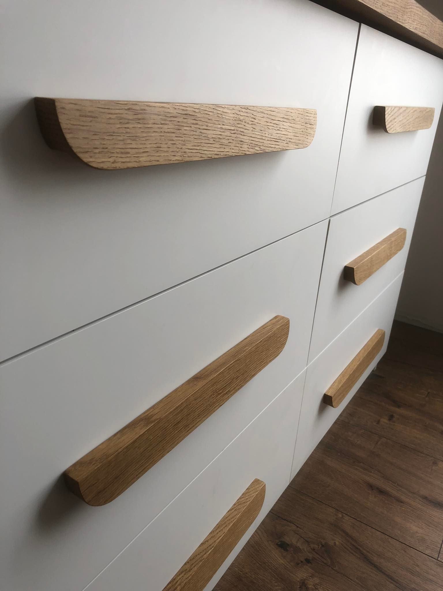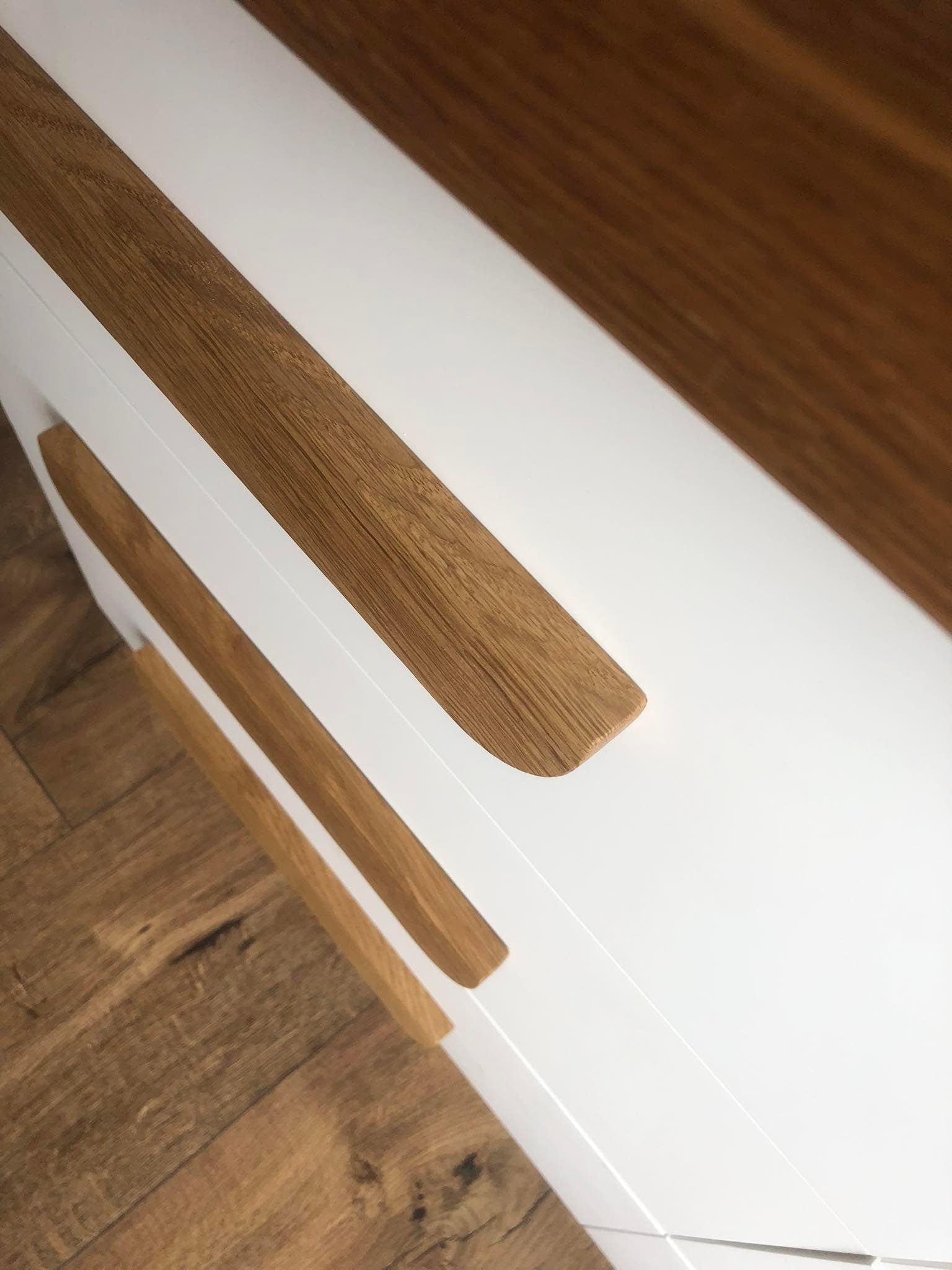 Add a refined Scandinavian accent to your furniture with our long slim oak handles. Each piece is handcrafted from solid oak, precisely milled and hand-finished to achieve a smooth, comfortable grip. Suitable for horizontal or vertical installation on cabinets, drawers, and wardrobes.