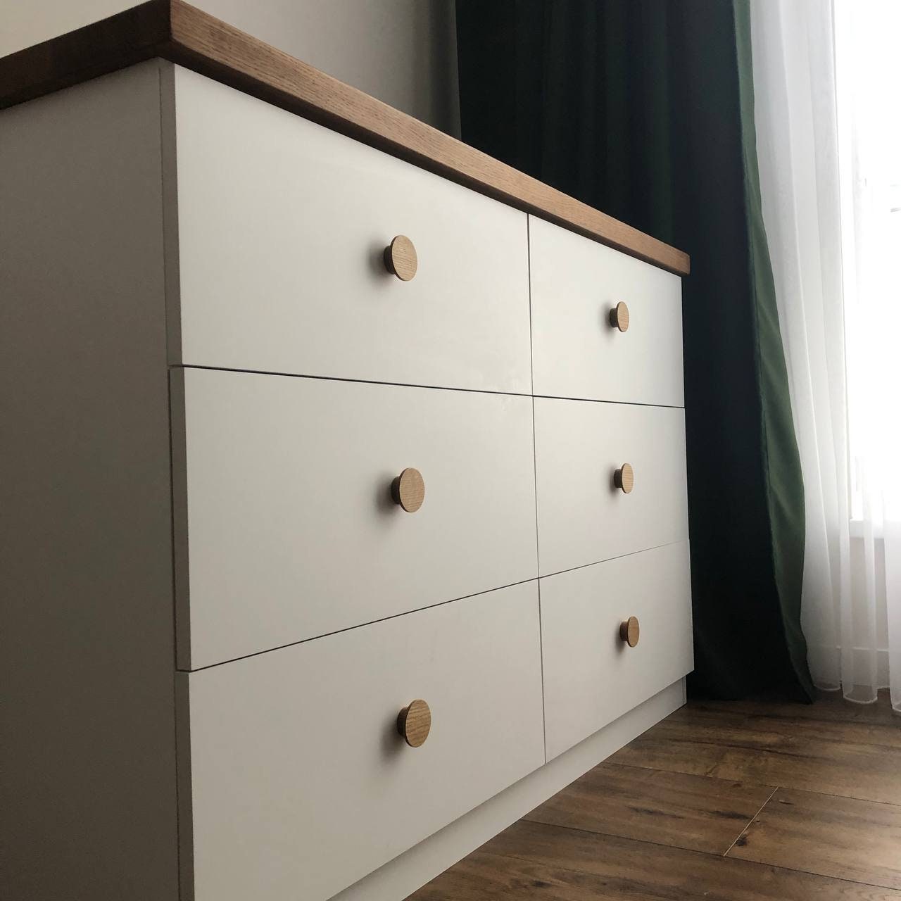 - All knobs are made from one continuous board for consistent color and texture