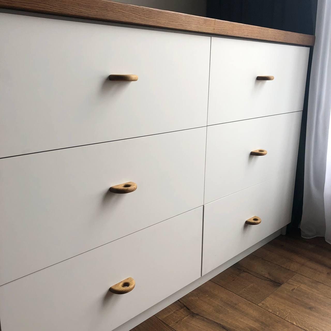 Enhance your furniture with our slim solid oak handles. Each piece is handcrafted with care, combining natural beauty and minimalist design. Perfect for cabinets, drawers, and wardrobes, these compact 3-inch pulls add warmth and Scandinavian simplicity to any interior.